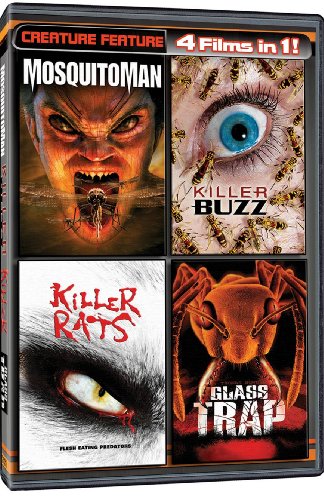 The CREATURE FEATURE 4-PACK contains four skin-crawling films, including: MOSQUITO MAN, KILLER BUZZ, KILLER RATS and GLASS TRAP. Make sure to close your doors and windows for over six hours of terrifying creature infestation!